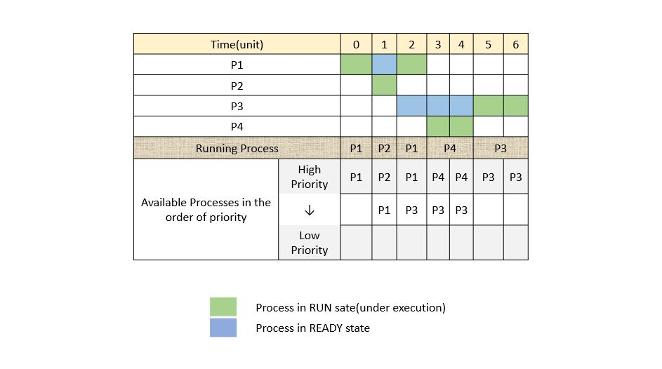 프로세스의 중요도에 따라 우선순위를 반영한 알고리즘으로, 비선점형 우선순위 스케줄링을 선점 스케줄링으로 변경한 기법이라고 이해하면 된다.