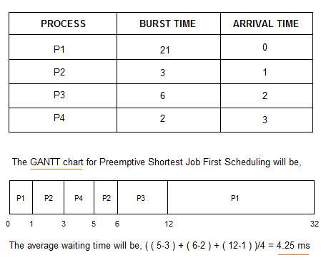 : p1이 ready queue에서 작업을 기다리고 있는데 p1보다 작업 시간이 적은 p2, p3 .. 들이 계속 들어온다면 p1은 작업을 시작할 수 없다. (Starvation 현상)