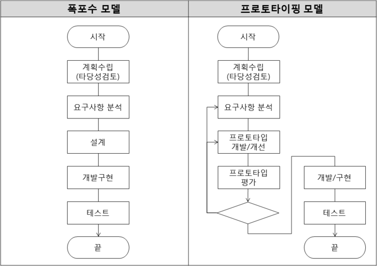 (5) 폭포수 모델 vs 프로토타입핑 모델 비교