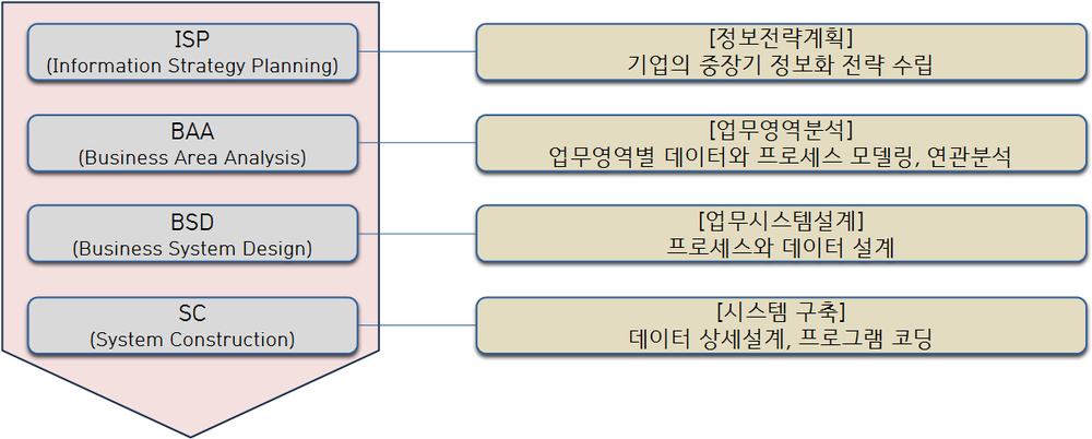 수직적 구조 방법론 : 정보 전략 계획 > 업무 영역 분석 > 업무 시스템 설계 > 기술 설계