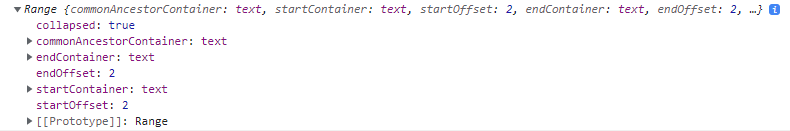 Range에 selection.prototype.getRangeAt을 통해 접근할 수 있다. 현재 크롬을 사용하고 있어서 getRangeAt(0)으로 하면 선택한 Range가 출력되지만, FireFox일 경우 모든 Range를 받아오고 싶다면 static 하게 0으로 입력하면 안 된다.